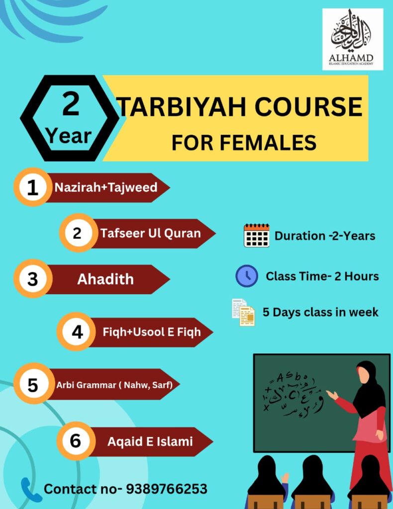 “2-Year Islamic Tarbiyah Course” — specially designed for girls to nurture their faith, character, and purpose in life, based on Qur’an and Sunnah.